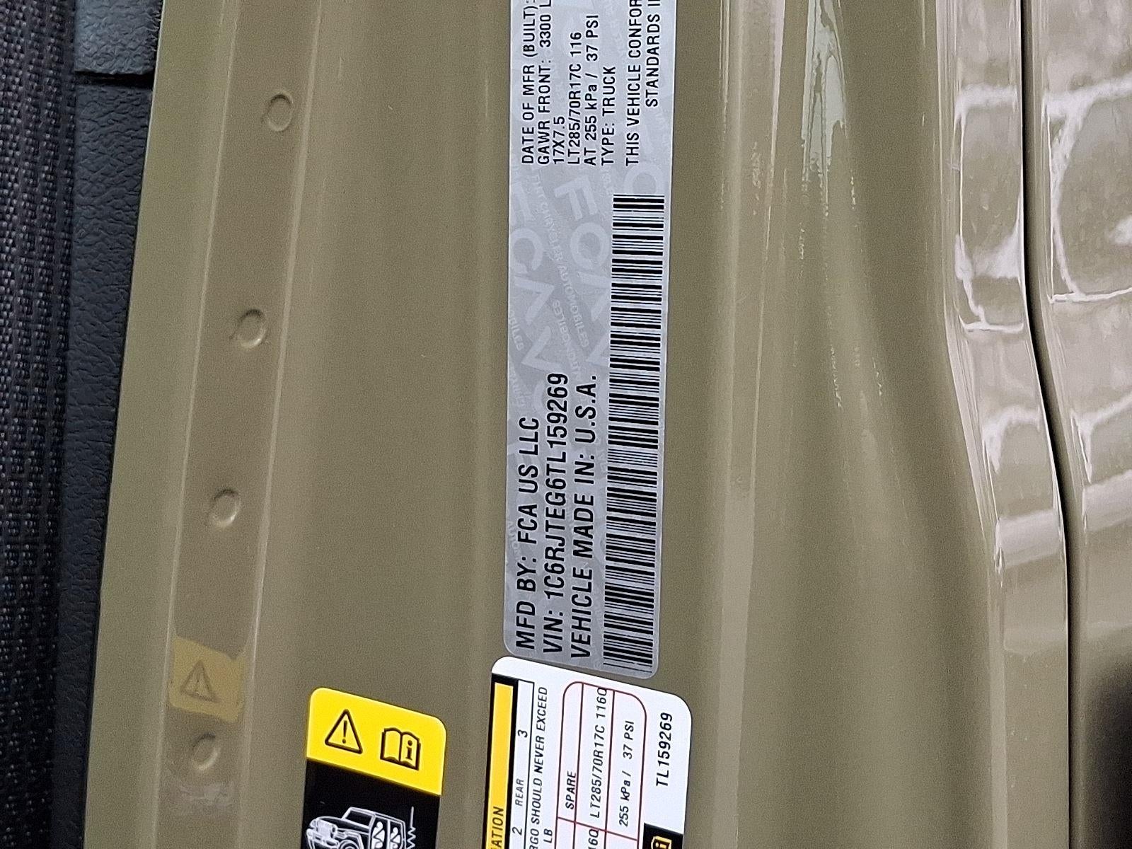 3.6L V6 24V VVT UPG I ENGINE W/ESS, 8-SPEED AUTOMATIC 850RE TRANSMISSION, QUICK ORDER PACKAGE 24A MOJAVE X, 17"" X 7.5"" DARK GRAY PAINTED WHEELS, LT285/70R17C BSW A/T TIRES, 41, GREEN/BLACK, LEATHER TRIMMED BUCKET SEATS, 6,140 LBS GVWR, LOCKING LUG NUTS, FRONT LICENSE PLATE BRACKET, MOPAR SPRAY IN BEDLINER, MOPAR ALL-WEATHER SLUSH MATS