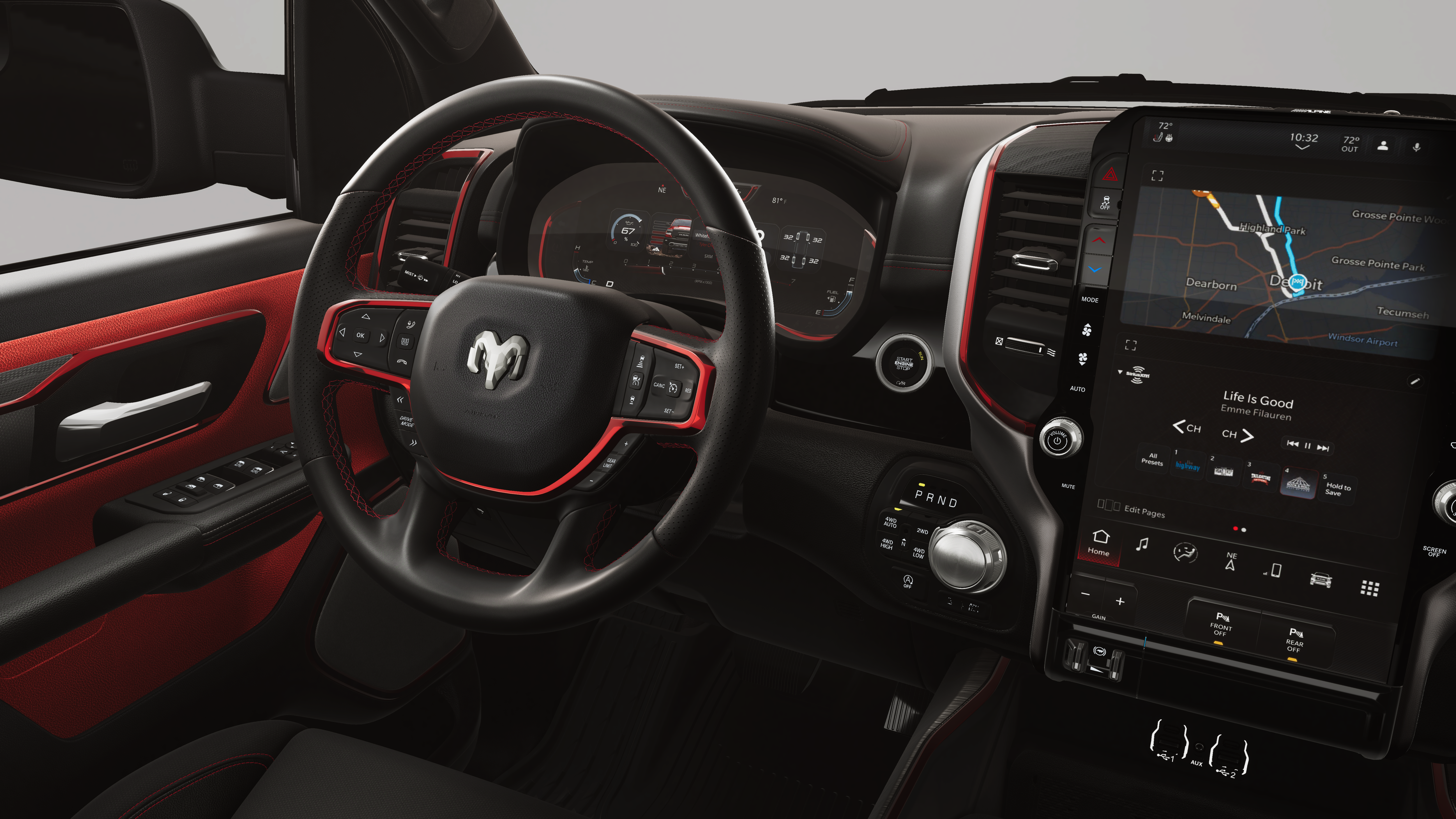 - 4-Wheel Disc Brakes w/4-Wheel ABS, Front Vented Discs, Brake Assist, Hill Descent Control, Hill Hold Control and Electric Parking Brake